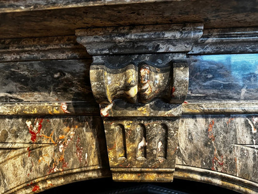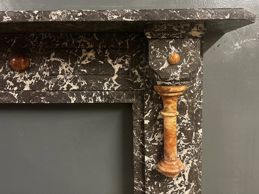 042 Original Victorian Gourdan Wood Polished Marble Fireplace